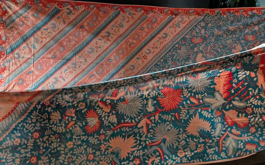 Hand-printed and -dyed cloth at a batik talk; 5 September, 2025.
