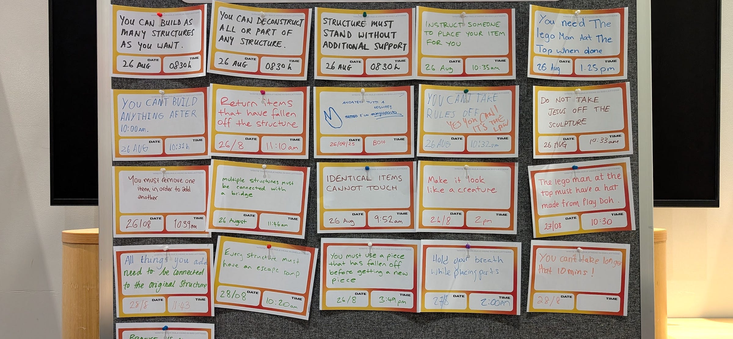 Then I got to Adelaide in June as a Visiting Research Fellow at MOD., a futures-oriented museum at the University of South Australia. The curatorial and exhibitions team here knows games deeply. After I ran a workshop unpacking different types of non-risk not-knowing, they started sending back game ideas that could actually instantiate these concepts. The director of the museum agreed to host a short-term experiment.