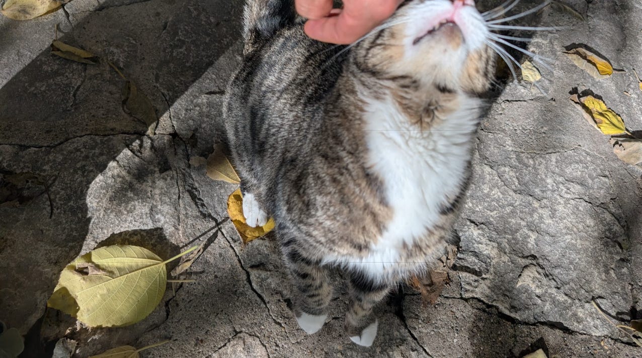 Charging station mediocre-restaurant cat outside Montelimar; 30 October, 2025.