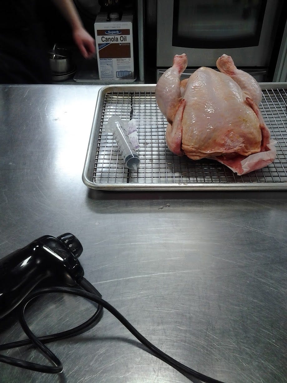 Photos: Until Issue #52, each week’s photos will be selected from the thousands I took during fieldwork for the book. This issue’s photos are: Photographing synthesized Peking duck skin at ThinkFoodGroup (2011); the answer to an emulsion question at Amaja (2011); injection brining a chicken at the Cooking Lab (2012), and yet another woodland jelly at the Fat Duck (2011).