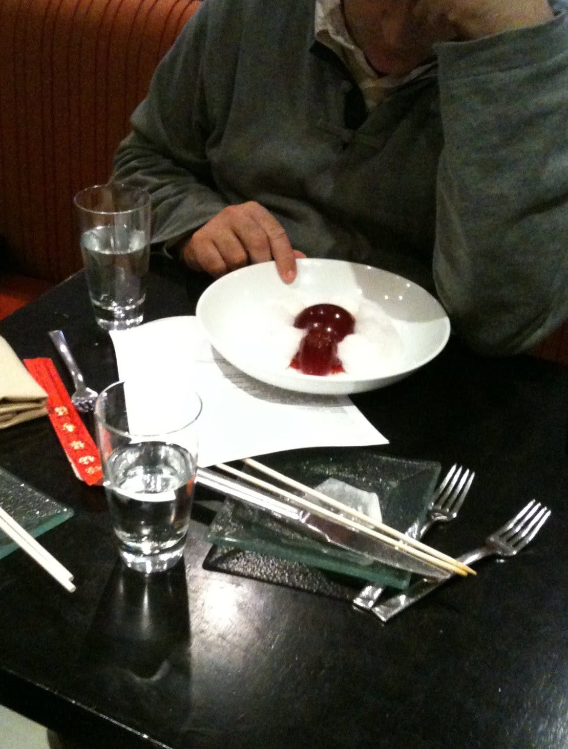Photos: Until Issue #52, each week’s photos will be selected from the thousands I took during fieldwork for the book. This issue’s photos are: gloomily surveying an unsuccessful dessert at ThinkFoodGroup (2011); consulting the oracle at the Cooking Lab (2012); picked-over foraged greens at Amaja (2011).
